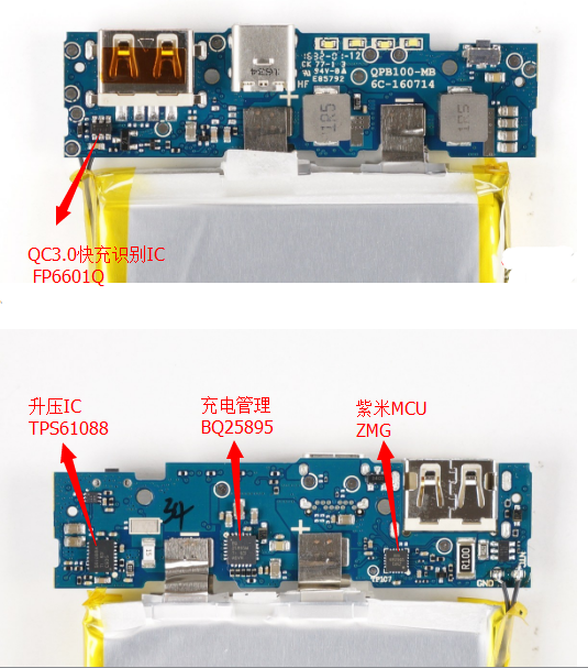 小米快充移動電源拆解,快充IC是FP6601Q