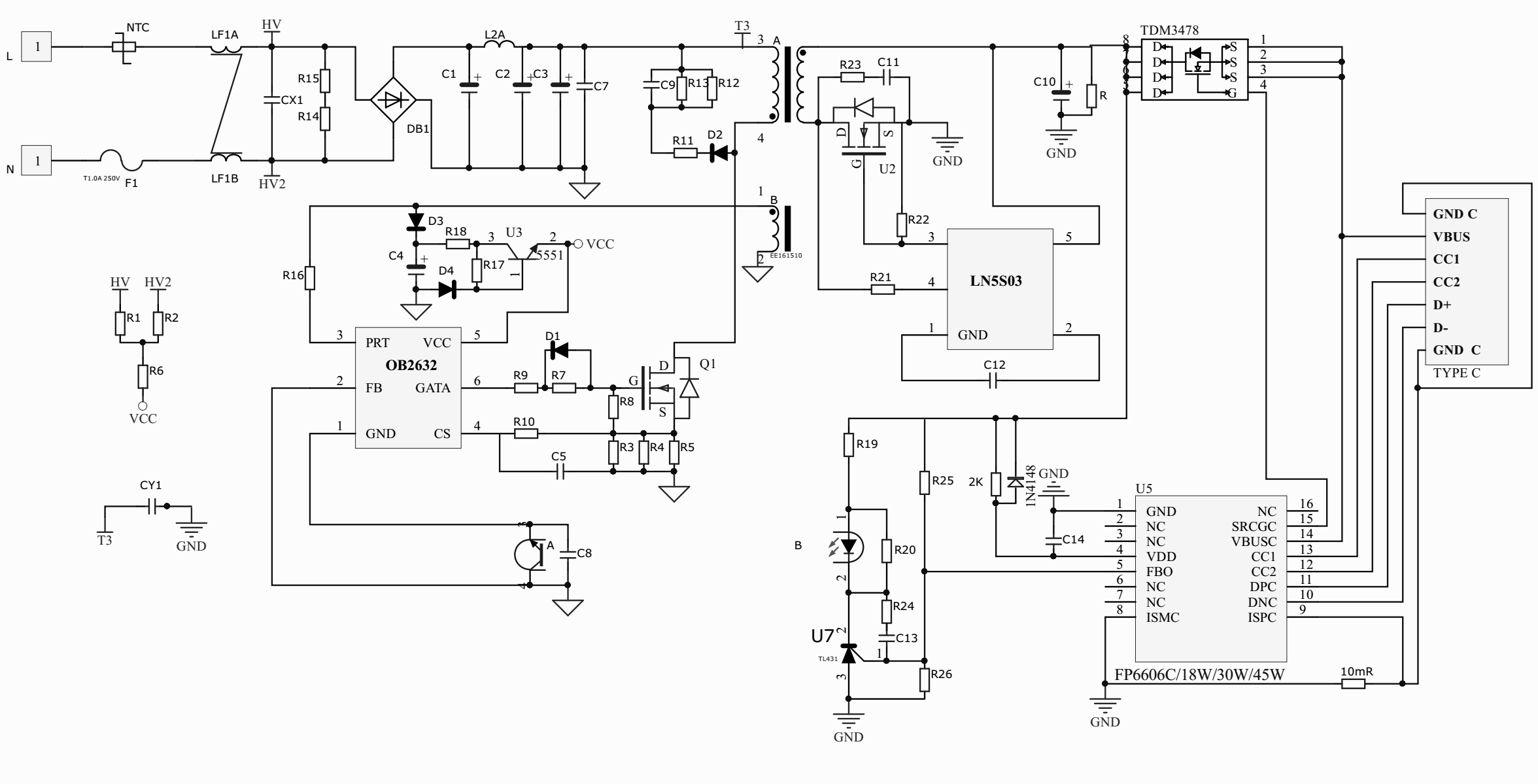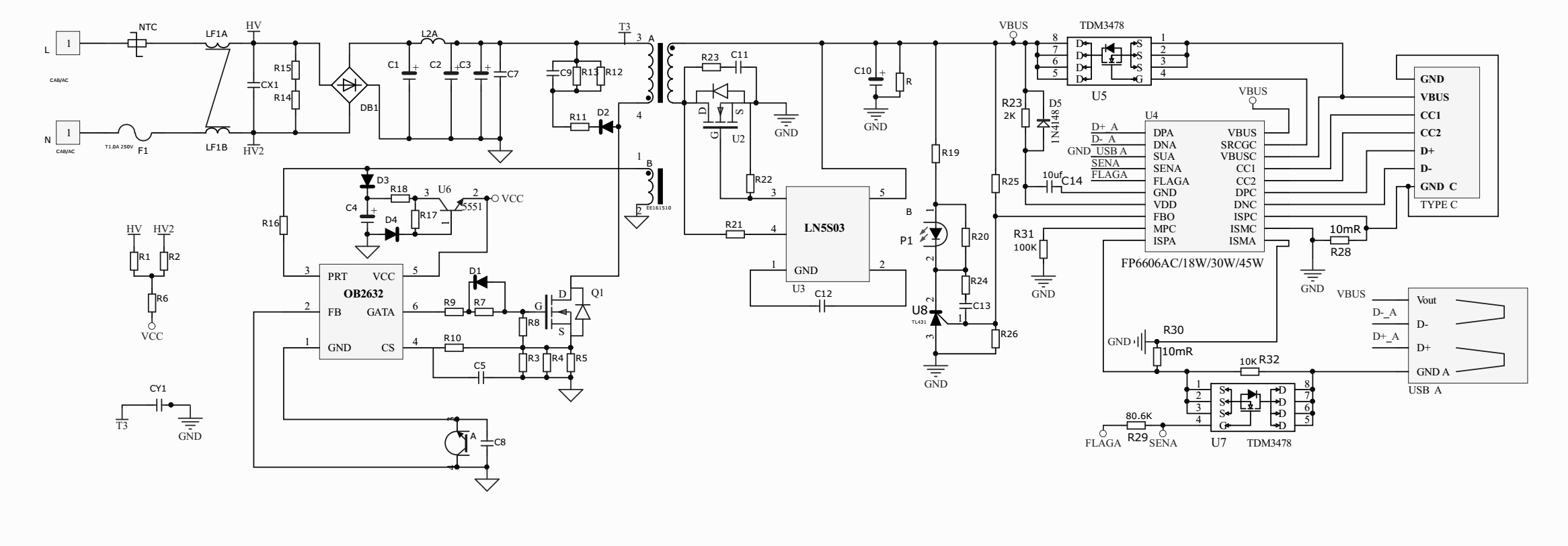 2,雙口A+C的30W PD快充充電器方案(原理圖,PCBA實(shí)物,BOM表)