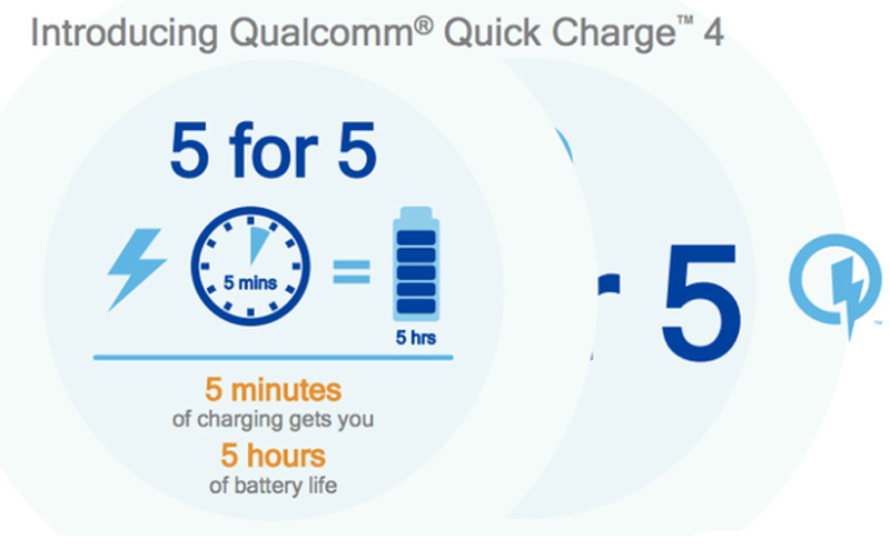 2016年11月17日,高通剛剛在紐約的驍龍技術(shù)峰會(huì)上發(fā)布了新一代的快充技術(shù)QC4.0。高通認(rèn)為,快充已經(jīng)成為了影響用戶購(gòu)買設(shè)備的重要因素之一,高通最新的QC4.0快充技術(shù),能夠給用戶帶來(lái)讓人滿意的快速充電體驗(yàn)。高通用“5 FOR 5”來(lái)形容QC4.0,這項(xiàng)技術(shù)能在充電5分鐘的的情況下,讓用戶使用5個(gè)小時(shí)(電池容量:2750mAh),它可以在15分鐘內(nèi),將一個(gè)電池容量為2750mAh的設(shè)備充至50%的電量。QC4.0向下兼容以往的QC3.0/QC2.0快充,支持USB Type-C、USB PD。