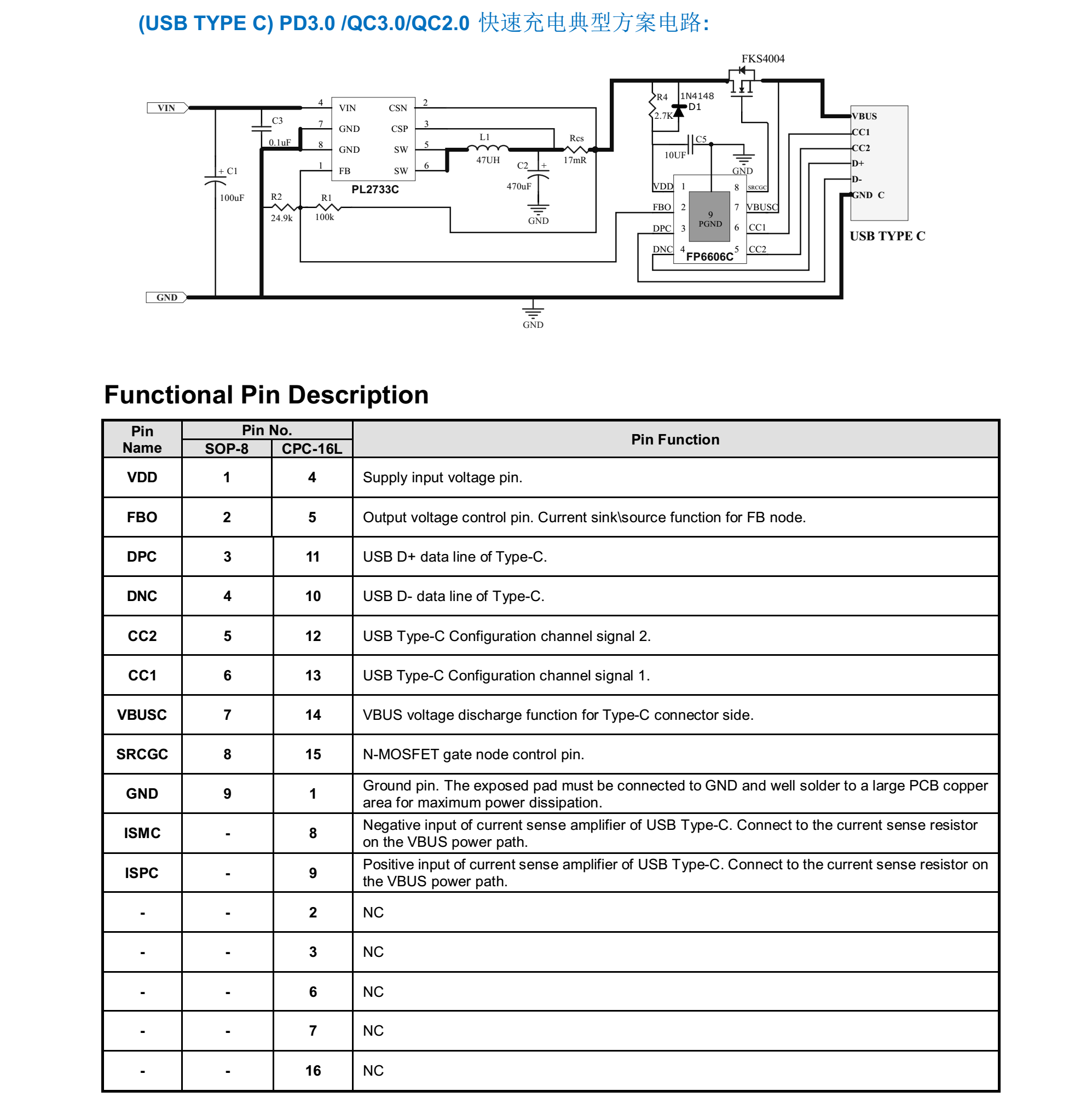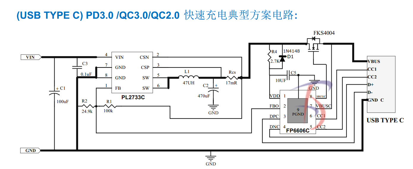 PL2733C +FP6606C組成(USB TYPE C) PD3.0 /QC3.0/QC2.0 快速充電車充方案: