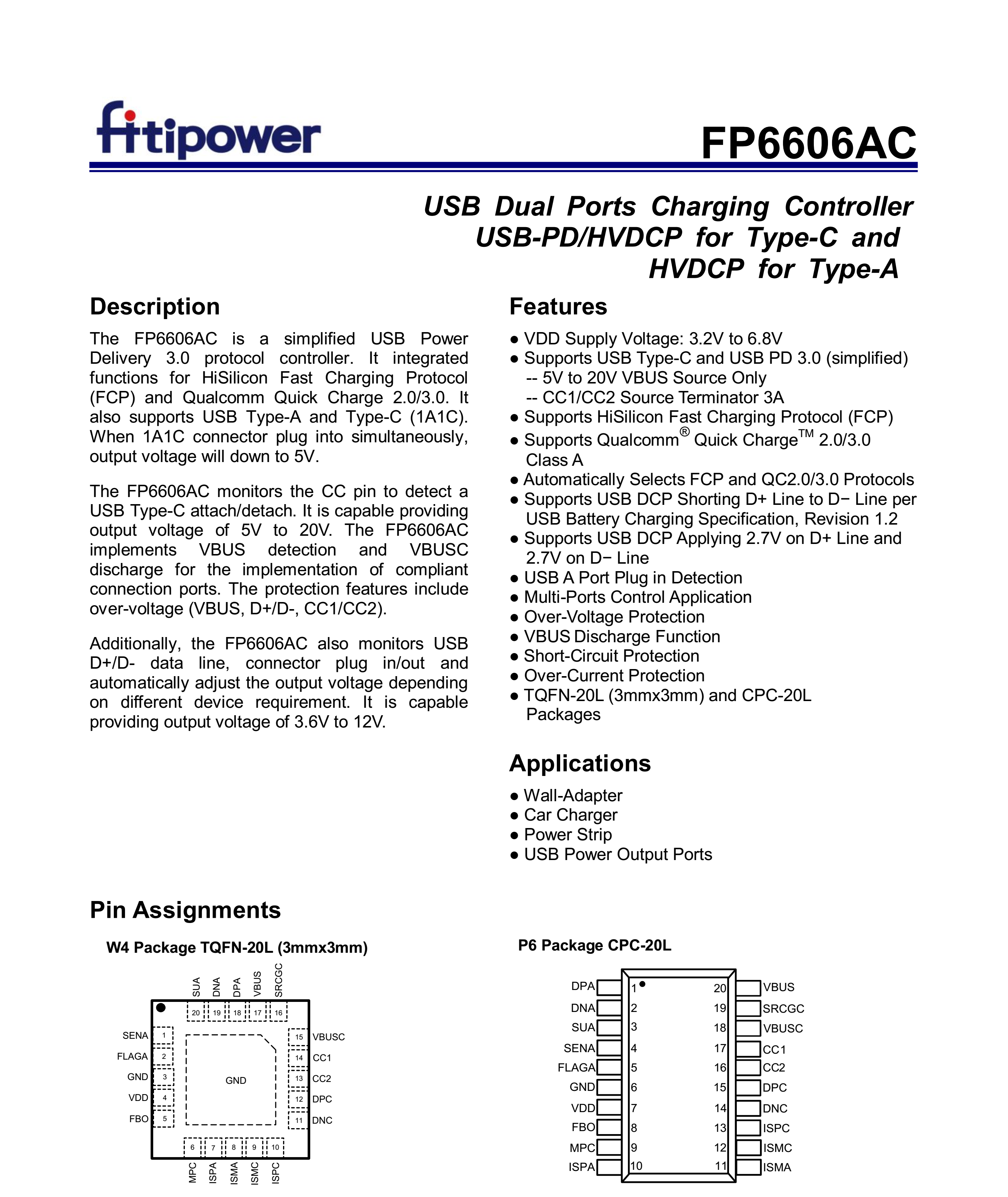 FP6606AC雙口QC+PD快充協(xié)議IC,18W,30W,45W原廠技術支持