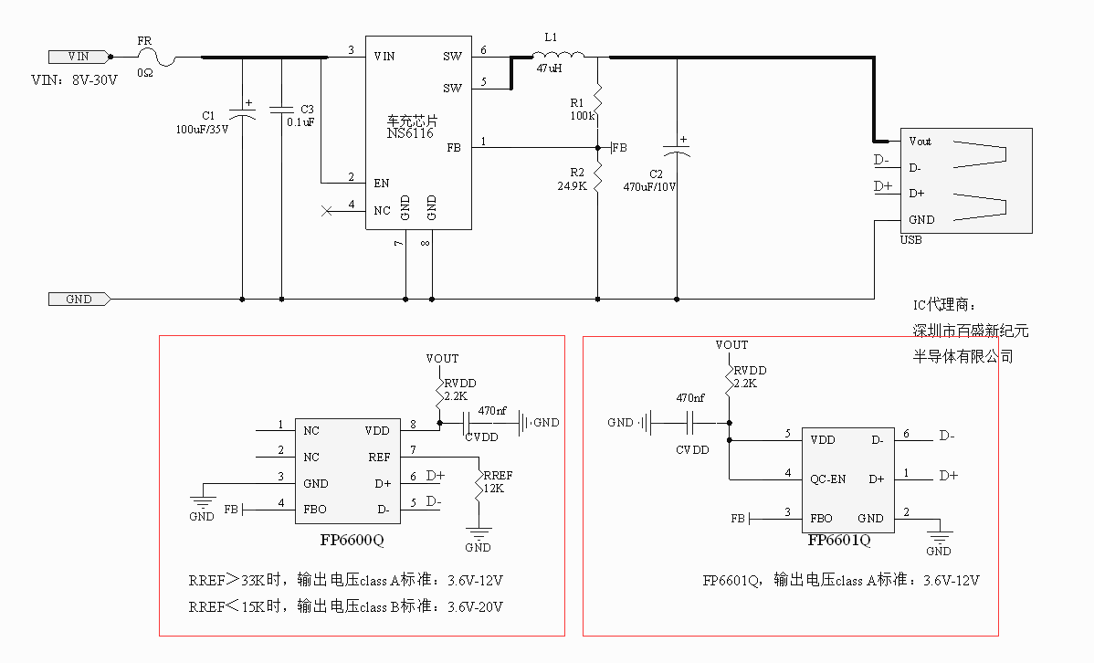前端IC:FP6600Q是QC3.0快充識(shí)別IC,不帶供電負(fù)載能力! 所以供電負(fù)載都是前端IC提供的。