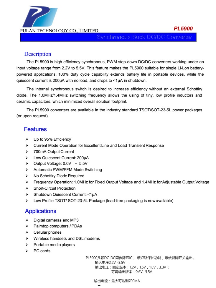 3.3V轉(zhuǎn)1.8V,輸入電源范圍:2.5V-5.5V 外圍簡單,同步整流降壓,高效率,低功耗,短路保護(hù),EN使能控制腳。