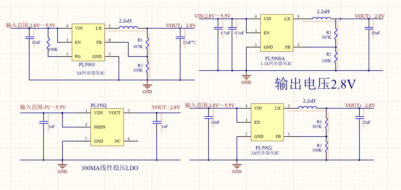 5V輸入電壓的降壓IC,輸出電壓有可調(diào)輸出版本,和固定輸出電壓版本,針對不同電流要求,選擇合適的降壓芯片來完成你的設(shè)計電路。