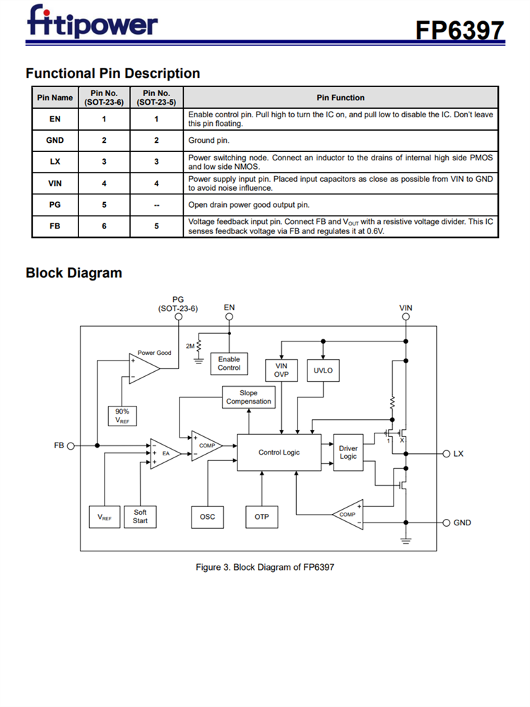 FP6397提供了SOT-23-5和SOT-23-6軟件包。