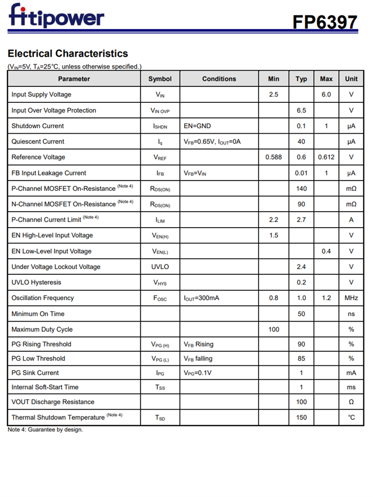 FP6397是一種高效、高頻同步DC-DC降壓變頻器。100%占空比功能提供了低退出操作,延長了便攜式系統(tǒng)的電池壽命。