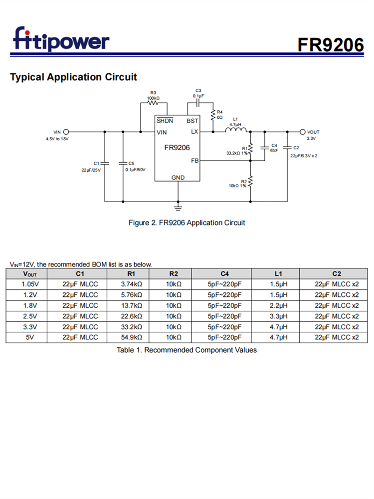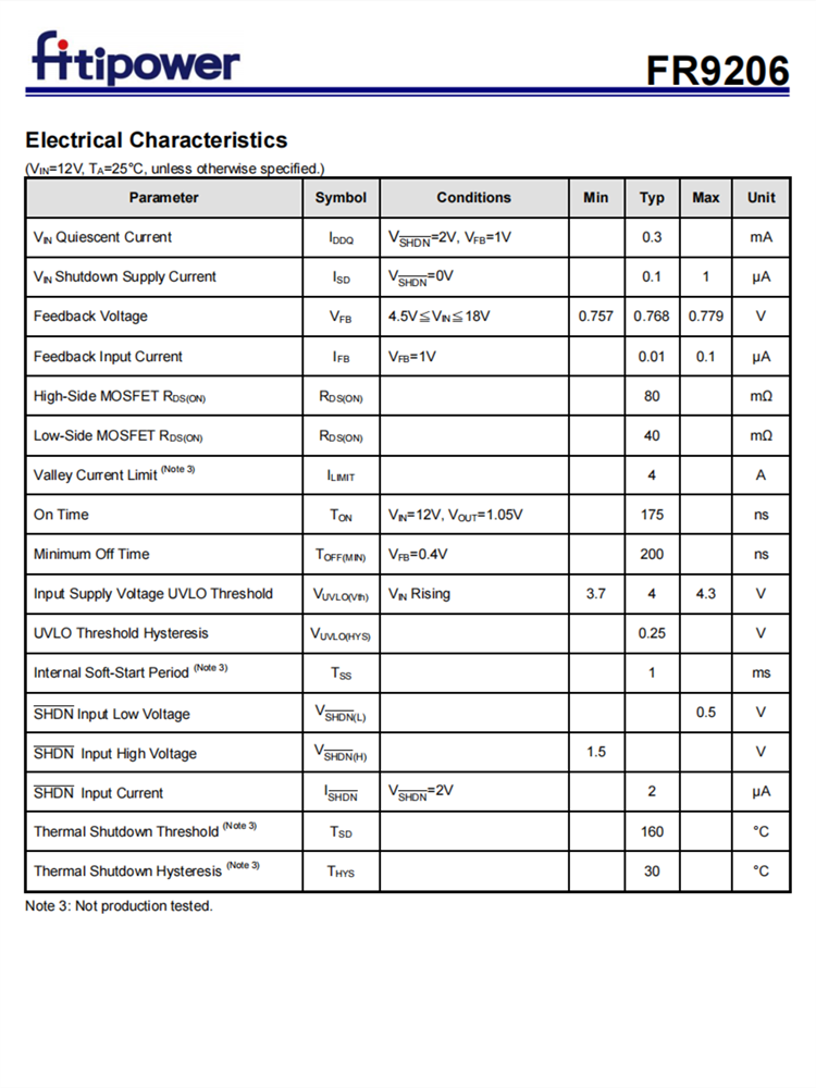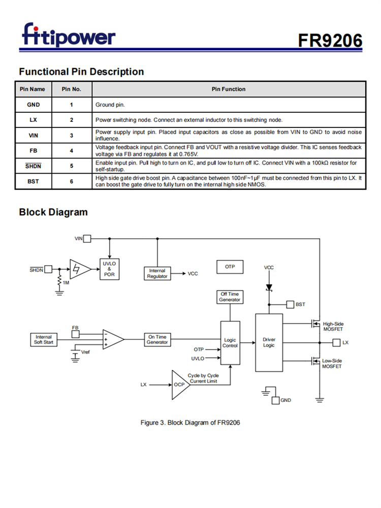 FR9206故障保護包括逐循環(huán)電流限制、短路保護、UVLO和熱停機。軟啟動功能防止開啟時涌電流。FR9206使用快速常數(shù)的時間控制,提供快速的瞬態(tài)響應(yīng),抗噪聲性和各種非常低的ESR輸出電容器,以確保性能穩(wěn)定。