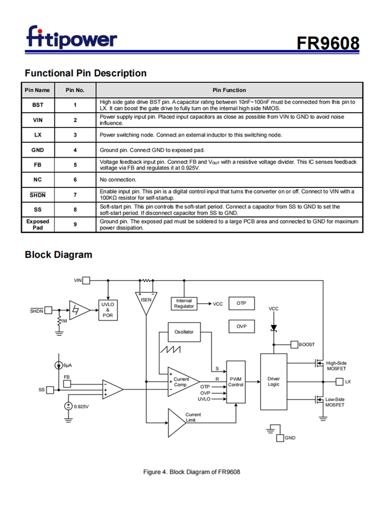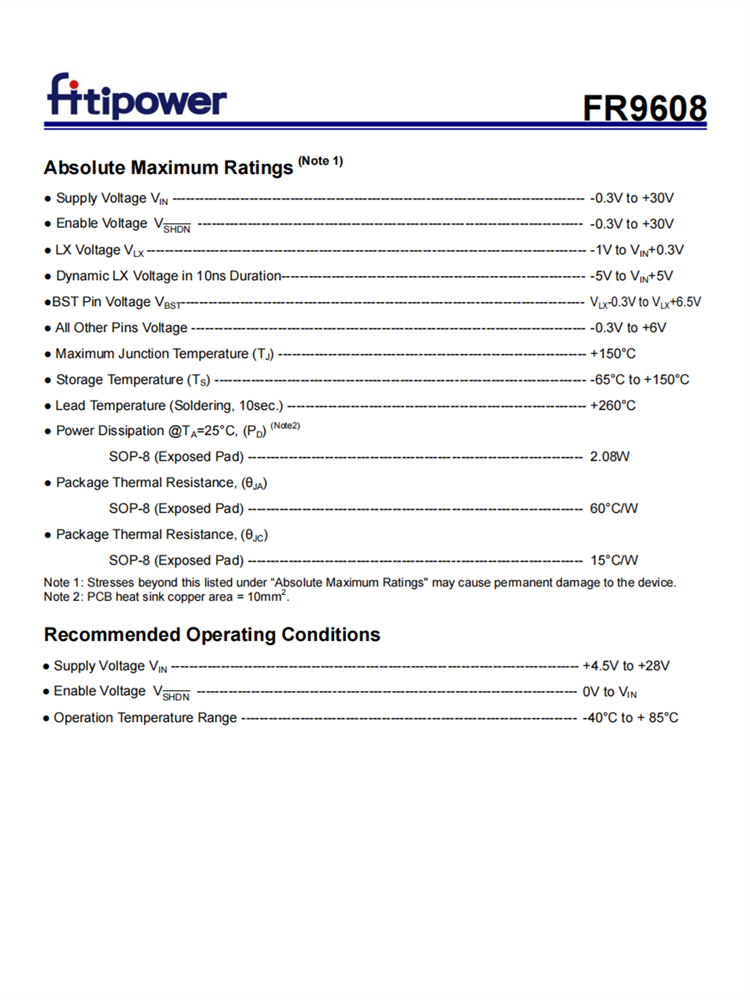 FR9608是可在一個(gè)SOP-8暴露的襯墊包,提供了一個(gè)非常緊湊的系統(tǒng)解決方案和良好的導(dǎo)熱率。