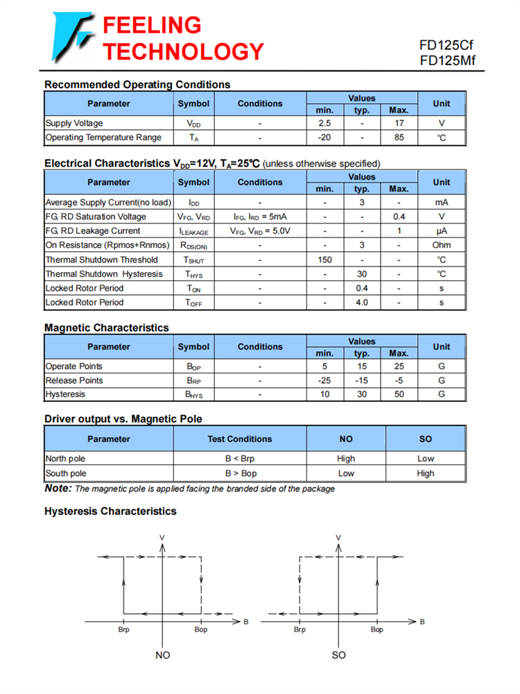 FD125CF/FD125MF 帶有嵌入式霍爾傳感器的智能電機驅(qū)動器芯片