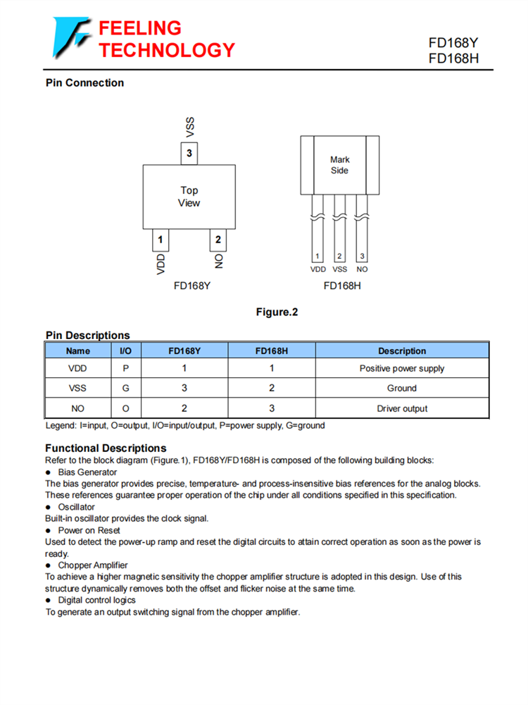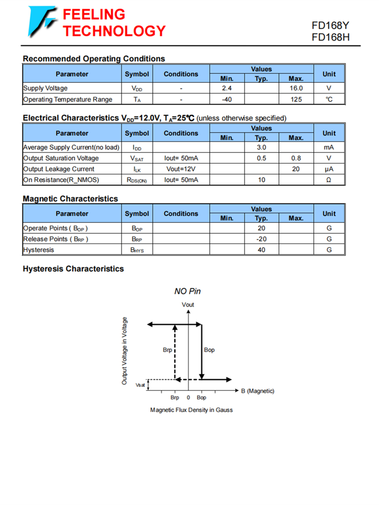 FD168Y/FD168H 單數(shù)字輸出霍爾效應(yīng)鎖存器芯片