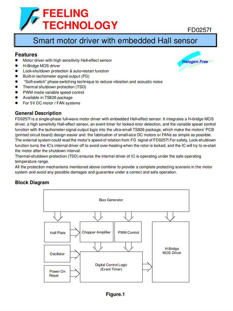 FD0257F 帶有嵌入式霍爾傳感器的智能電機(jī)驅(qū)動(dòng)器芯片