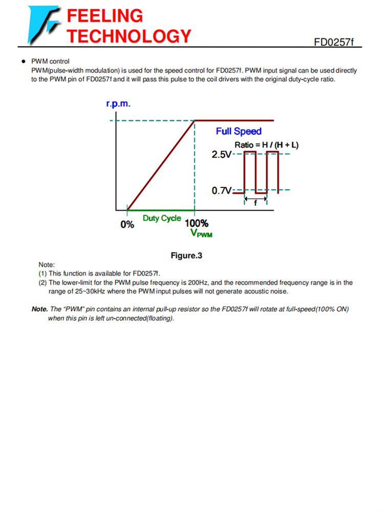 外部系統(tǒng)可以從FD0257f的FG信號(hào)中讀取電機(jī)的轉(zhuǎn)速。為安全起見,鎖定關(guān)閉功能關(guān)閉集成電路內(nèi)部驅(qū)動(dòng)器以避免轉(zhuǎn)子鎖定時(shí)過熱,集成電路在關(guān)閉間隔后嘗試重新啟動(dòng)電機(jī)。