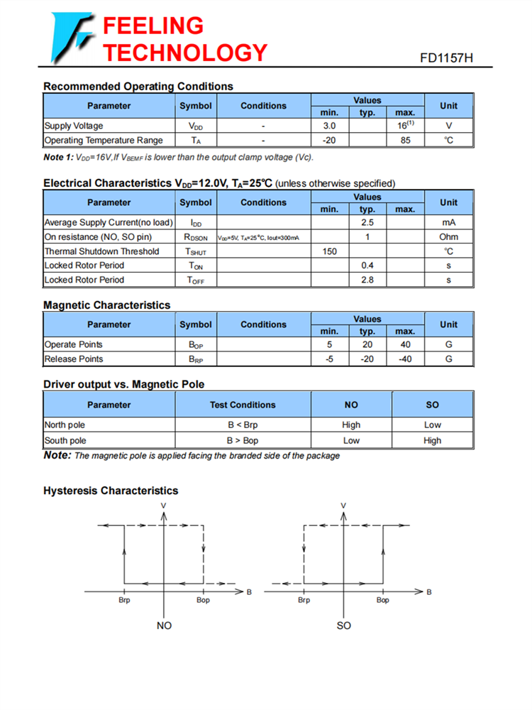 FD1157H 帶有嵌入式霍爾傳感器的智能電機(jī)驅(qū)動(dòng)器芯片
