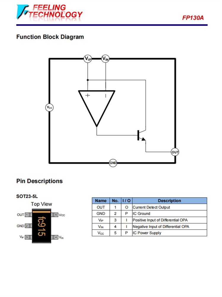 FP130A 封裝SOT23-5L 軌道電流測量IC