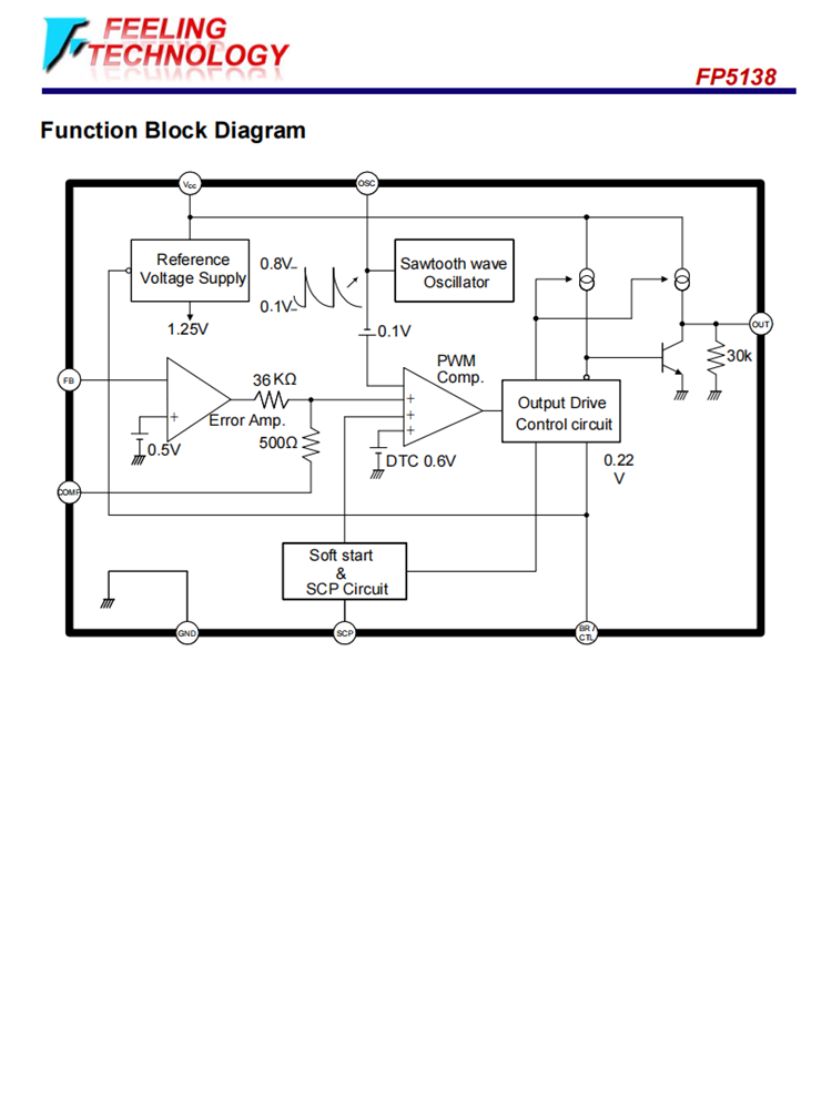 FP5138是一種增壓開(kāi)關(guān)調(diào)節(jié)器控制器IC。FP5138包括一個(gè)用于驅(qū)動(dòng)NPN晶體管或N-MOS的圖騰柱輸出級(jí),用于比較反饋放大器輸出電壓的高精度參考(0.5V),精密最大占空比控制,可編程的具有短路保護(hù)功能的軟啟動(dòng)和操作和待機(jī)模式之間的工作模式控制。