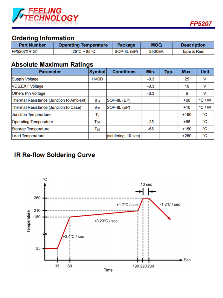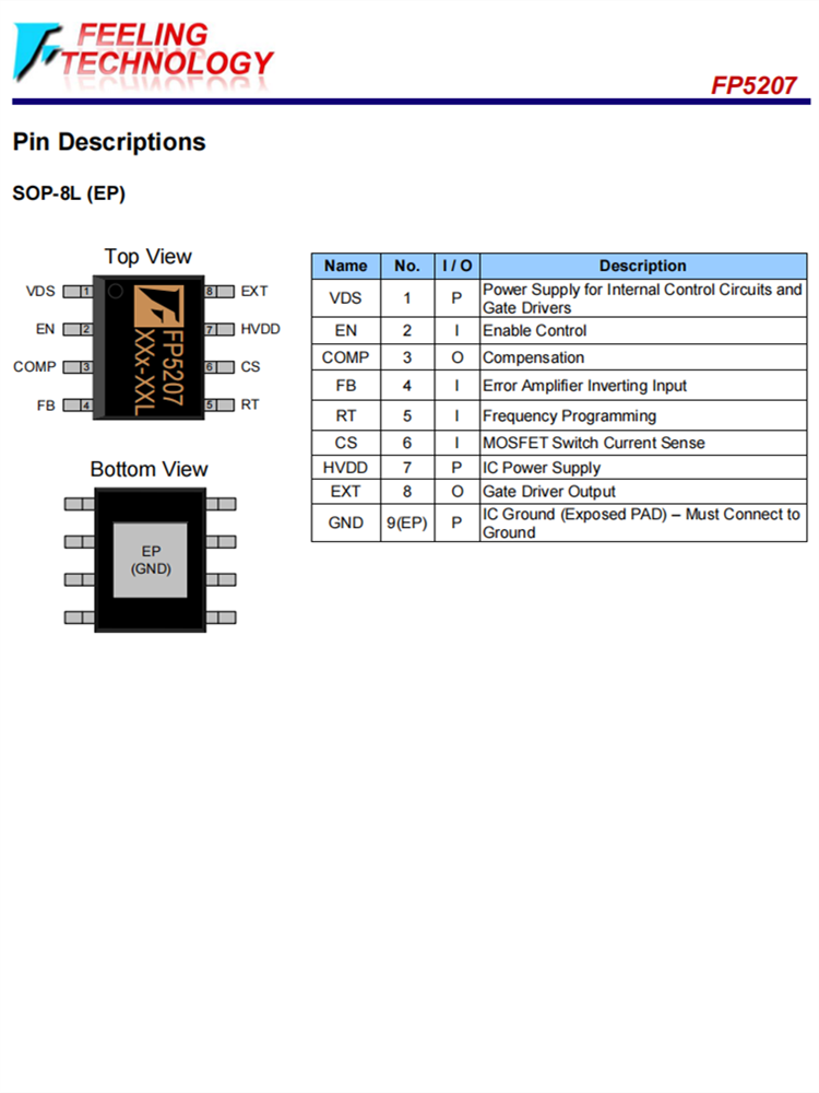 FP5207可在小占用空間的SOP-8L(EP)包中使用,以適合為應(yīng)用領(lǐng)域節(jié)省空間的PCB布局。