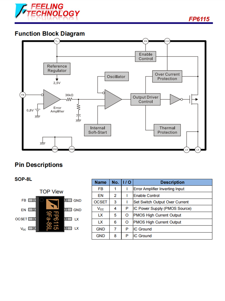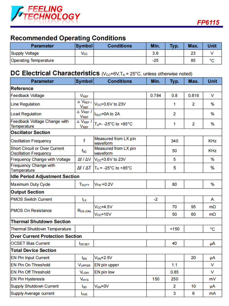 FP6115 340 KHz、2A,異步降壓調(diào)節(jié)器芯片