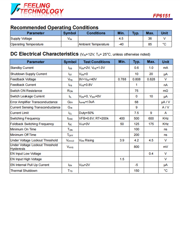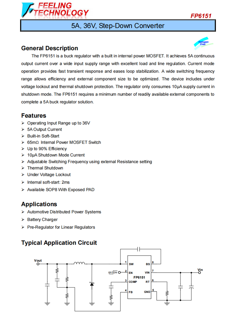 FP6151 5A,36V,降壓轉(zhuǎn)換器芯片