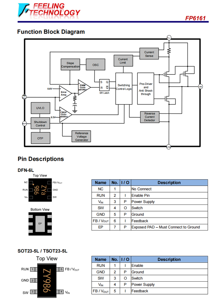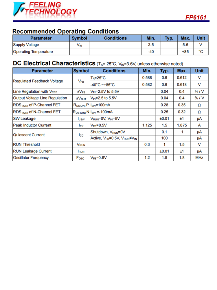 FP6161 1.5MHz,1A同步降壓調(diào)節(jié)器芯片