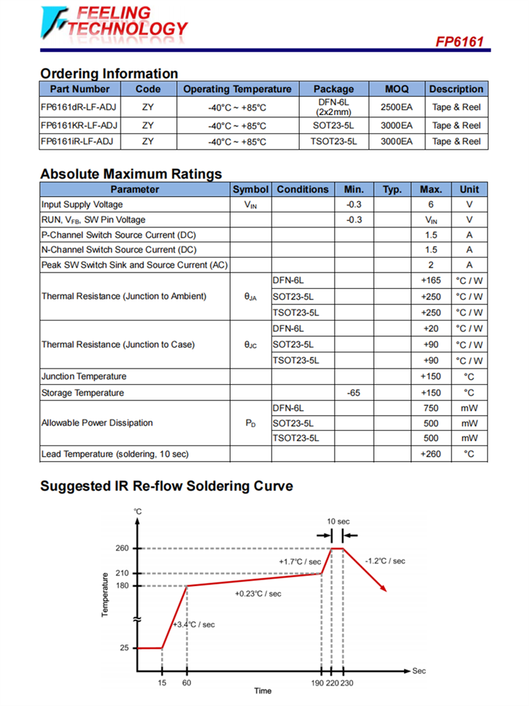FP6161是一種高效電流模式同步降壓PWM DC-直流調(diào)節(jié)器。內(nèi)部產(chǎn)生的0.6V精度反饋參考電壓被設(shè)計用于低輸出電壓。低RDS(ON)同步開關(guān)可顯著降低導(dǎo)電損耗。為了延長便攜式應(yīng)用程序的電池壽命,低損耗操作支持100%的占空比。關(guān)閉模式還有助于節(jié)省當(dāng)前的消耗。FP6161封裝在DFN-6L、SOT23-5L和TSOT23-5L中,以減少PCB空間。