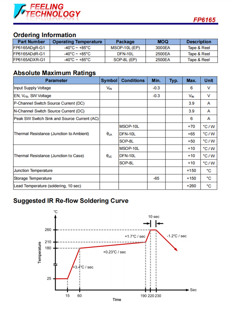 FP6165是一種高效電流模式同步降壓PWM DC-直流調(diào)節(jié)器。內(nèi)部產(chǎn)生的0.6V精度反饋參考電壓被設(shè)計(jì)用于低輸出電壓。低RDS(ON)同步開關(guān)可顯著降低導(dǎo)電損耗。為了延長便攜式應(yīng)用程序的電池壽命,低損耗操作支持100%的占空比。關(guān)閉模式還有助于節(jié)省當(dāng)前的消耗。FP6165采用MSOP-10L、DFN-10L和SOP-8L,以減少PCB空間。