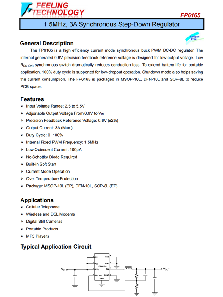 FP6165 1.5MHz,3A同步降壓調(diào)節(jié)器芯片