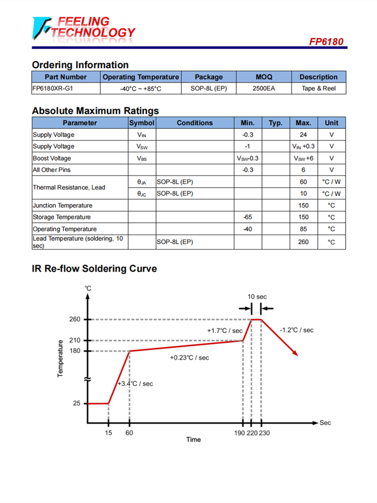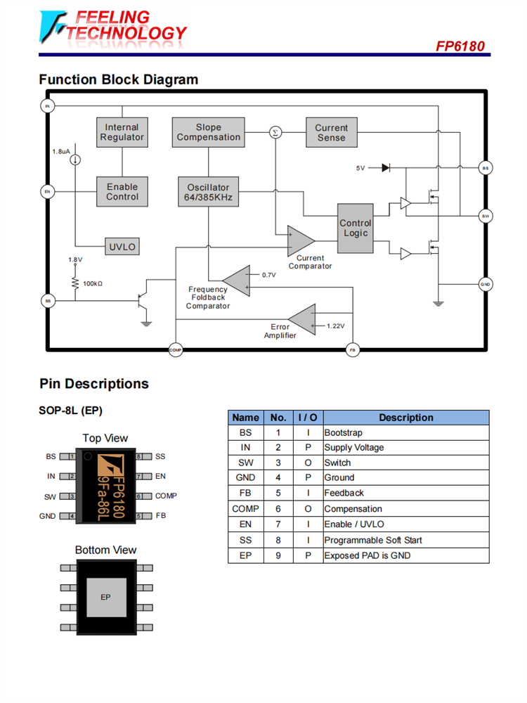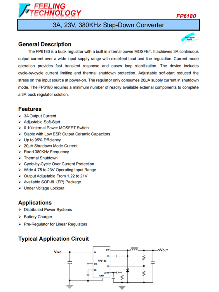 FP6180 SOP-8L 3A 23V 380KHz降壓變頻器 內(nèi)置內(nèi)部功率MOS