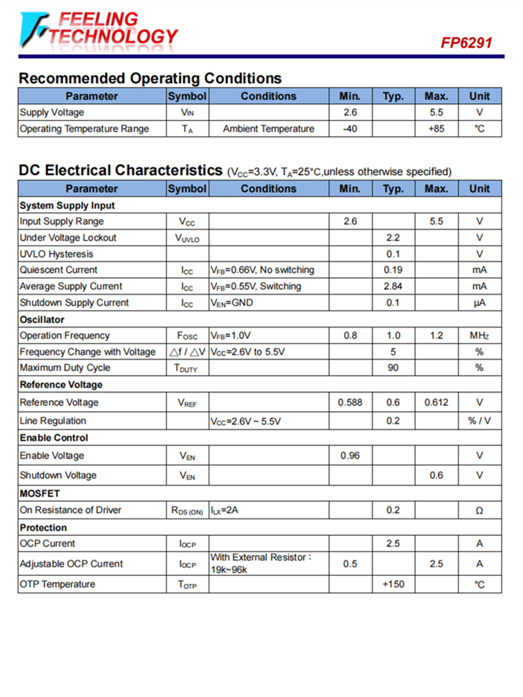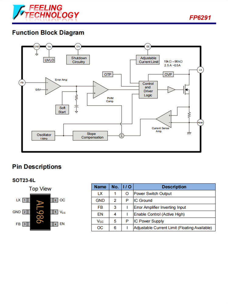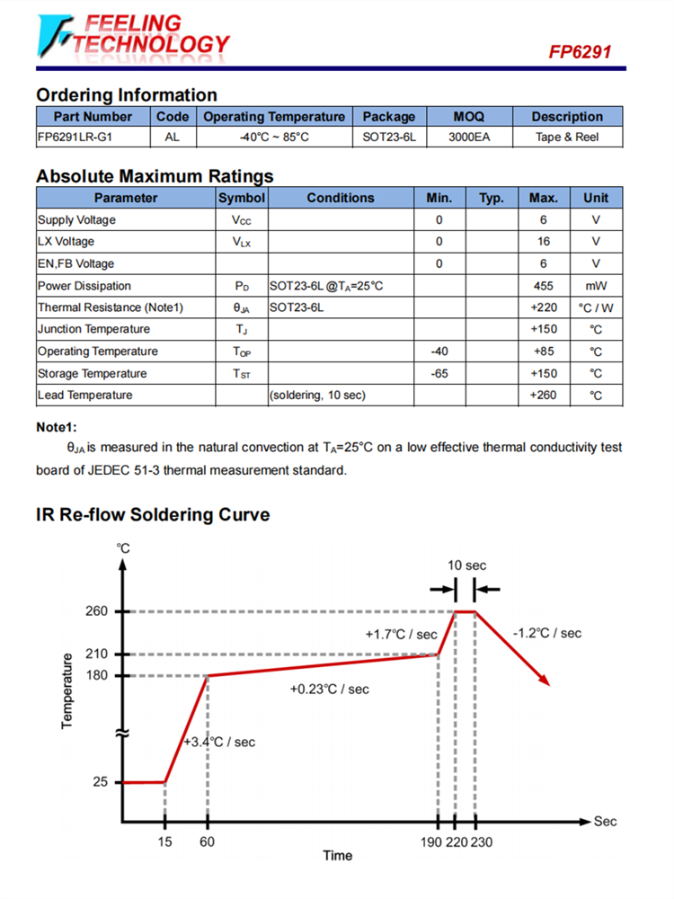 FP6291可在SOT23-6L軟件包中提供,并為應(yīng)用程序領(lǐng)域提供了節(jié)省空間的PCB。