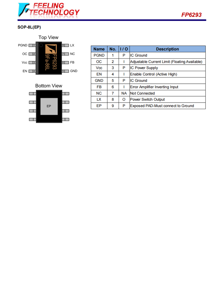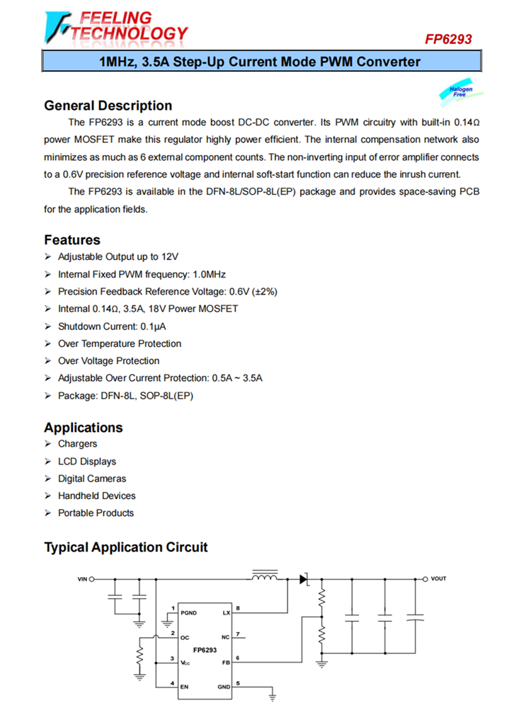FP6293可在DFN-8L/SOP-8L(EP)軟件包中提供,并為應(yīng)用程序領(lǐng)域提供了節(jié)省空間的PCB。