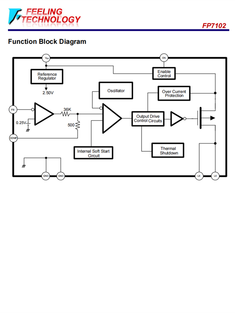 FP7102 28V,2A降壓,白色LED的恒流開關調(diào)節(jié)器芯片