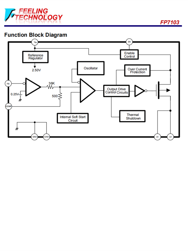 FP7103是一個PWM控制降壓轉換器,旨在為驅動高功率led提供一個簡單、高效的解決方案。通過一個0.25V的參考電壓反饋控制來最小化功耗,一個外部電阻器根據(jù)需要設置電流,以驅動各種類型的led。FP7103包括一個高電流的P-MOSFET,以實現(xiàn)高效率和優(yōu)良的瞬態(tài)特性。PWM控制電路能夠將占空比從0線性改變到100%。其他功能包括用戶可訪問的EN引腳,用于啟用、熱關機、逐循環(huán)電流限制和過電流保護。