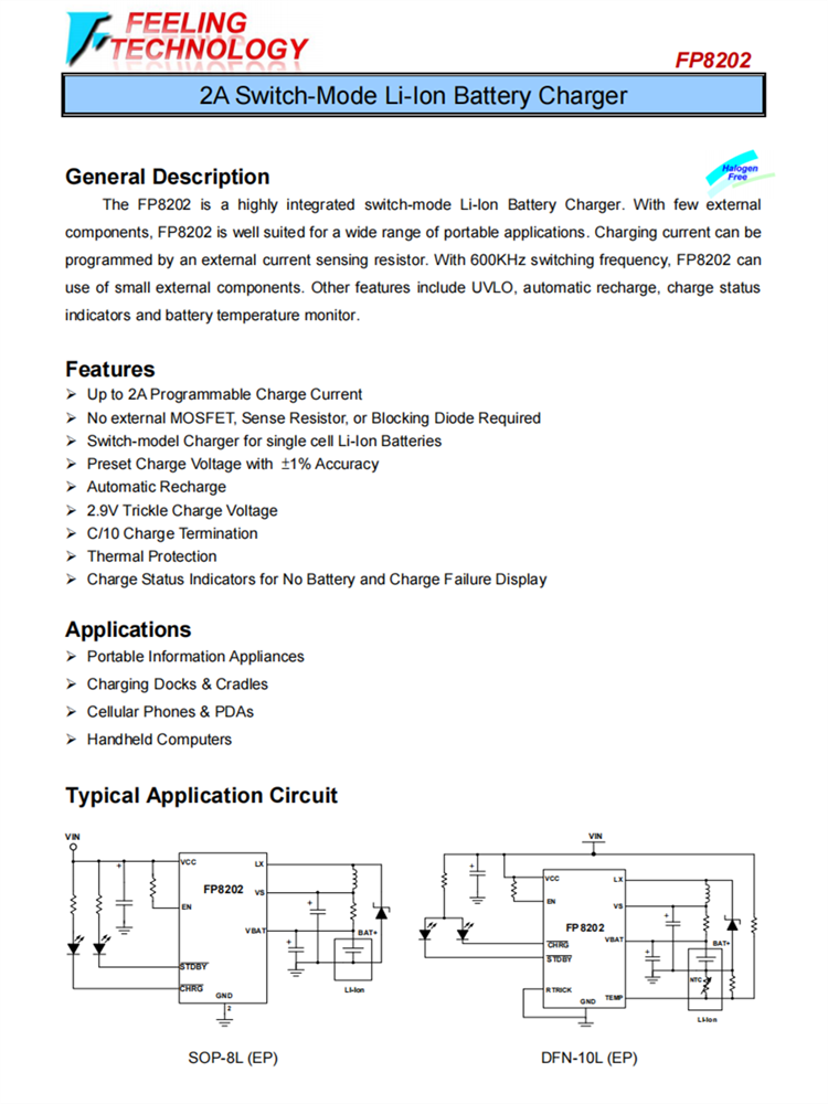 FP8202 2A開關模式的鋰離子電池充電器芯片