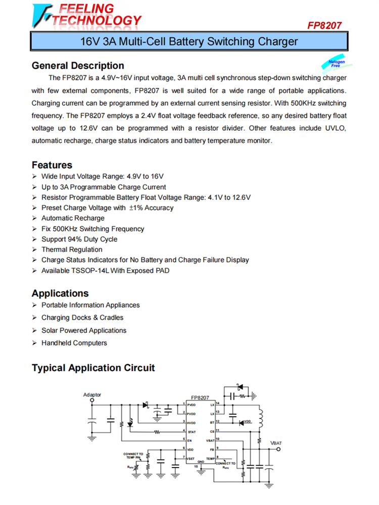 FP8207 16V 3A多芯電池開(kāi)關(guān)充電器芯片