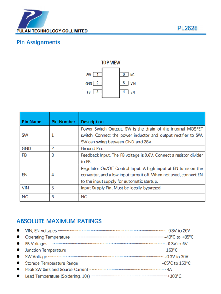 PL2628 恒定頻率、6引腳SOT23電流模式升壓轉(zhuǎn)換器芯片