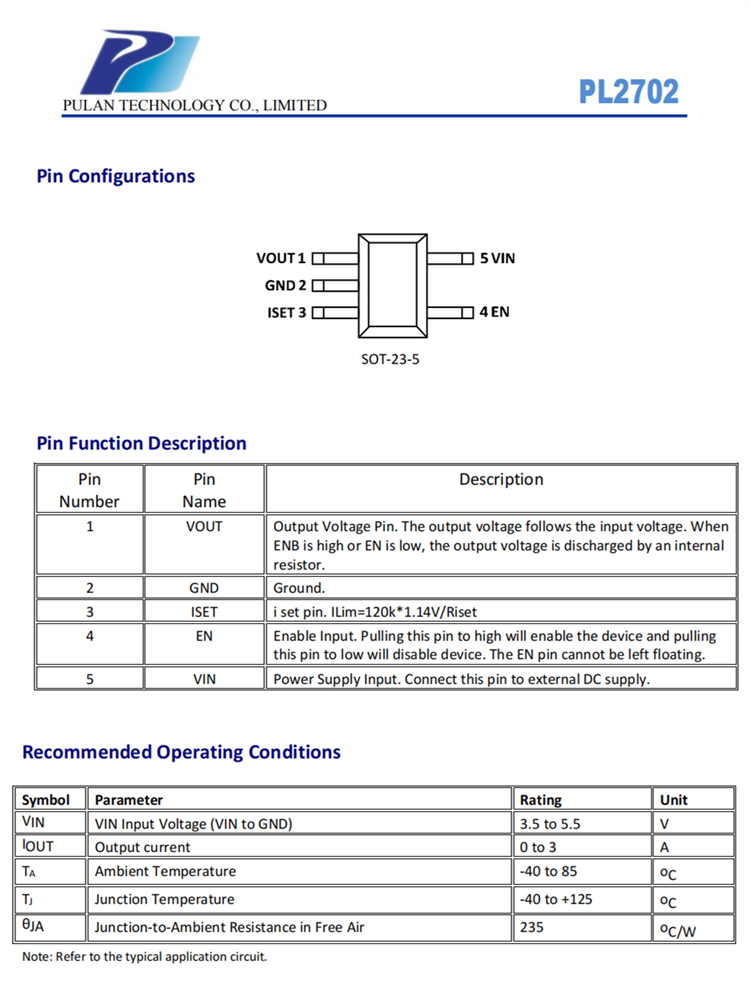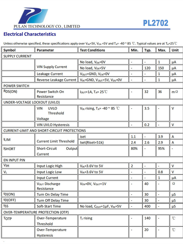 PL2702電源開關(guān)是為USB應(yīng)用程序而設(shè)計的。32mΩn通道MOSFET電源開關(guān)滿足USB規(guī)范的電壓降要求。