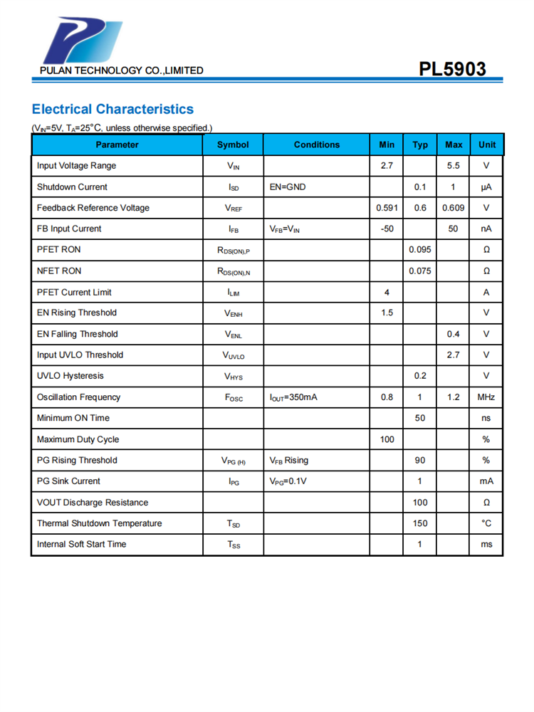 PL5903是一種高效的1MHz同步降壓DC-DC調(diào)節(jié)器