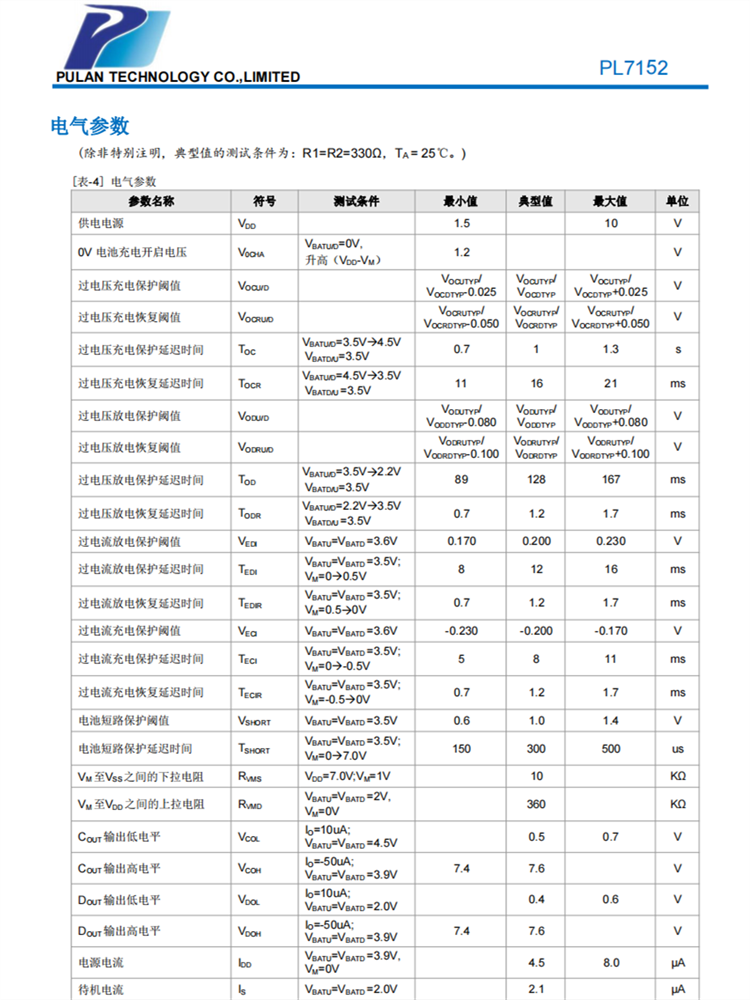 PL7152 是一款基于 CMOS 的雙節(jié)可充電鋰電池保護電路,它集高精度過電壓充電保護、過電壓放電保護、過電流充電保護、過電流放電保護、電池短路保護等性能于一身。