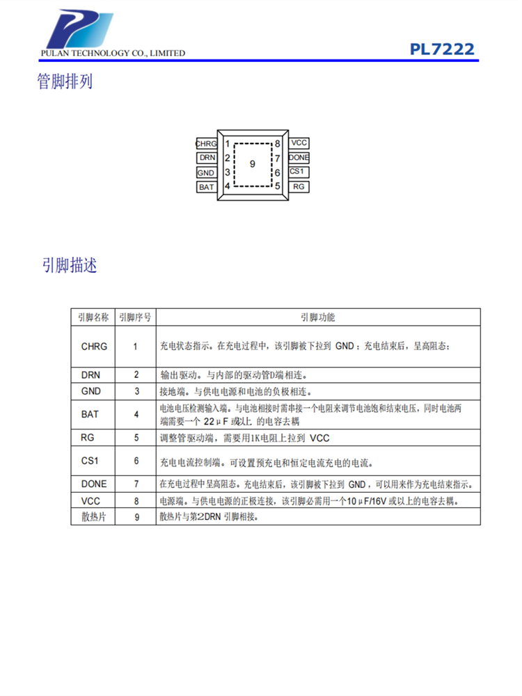 PL7222 是一款專門為高精度的線性鋰電池充電器而設(shè)計的電路,非常適合那些低成本、便攜式的充電器使用。它集高精度預(yù)充電、恒定電流充電、恒定電壓充電、電池狀態(tài)檢測、充電結(jié)束低泄漏、充電狀態(tài)指示等性能于一身,可以廣泛地用于EPC、移動多媒體、手持設(shè)備等領(lǐng)域。