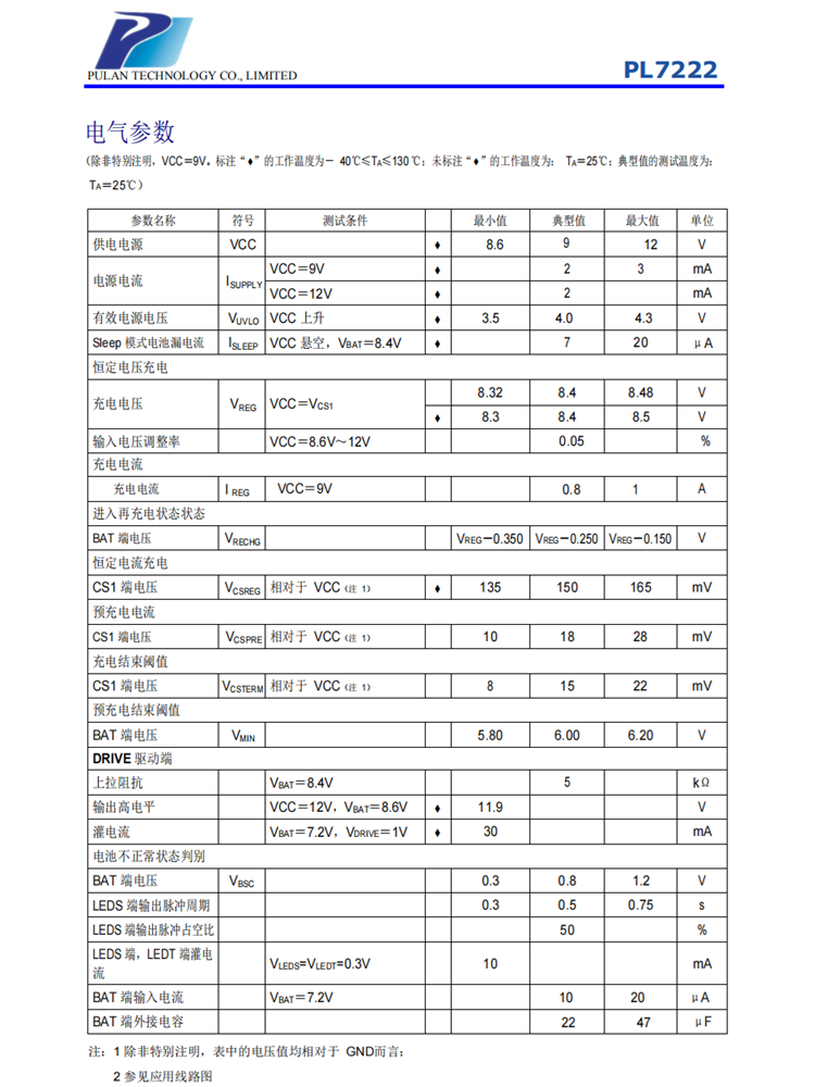 PL7222 還可以通過調(diào)節(jié)外圍電阻來提高電池飽和結(jié)束電壓,可以設(shè)到需要的電壓點。PL7222 默認輸出電壓:8.4V,再充電電壓:8.15V,采用SOP8封裝形式。