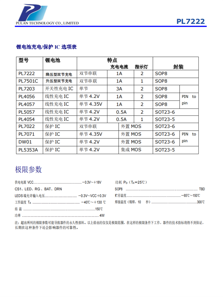 PL7222 SOP8封裝 雙節(jié)鋰電池充電器控制電路
