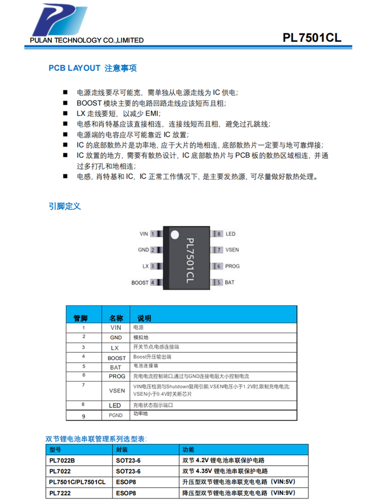 PL7501CL 雙節(jié)鋰電池充電管理芯片