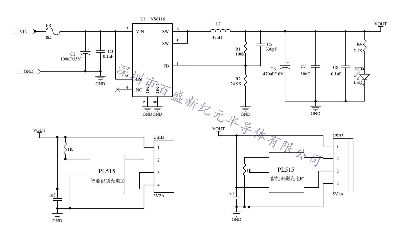 NS6116雙口2A+1A,帶智能識別充電車充原理圖: